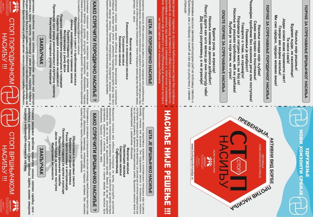 Kao jedan od produkata projekta, nastala je i sledeća brošura koja je podeljena po osnovnim i srednjim školama u opštinama Priboj i Prijepolje.